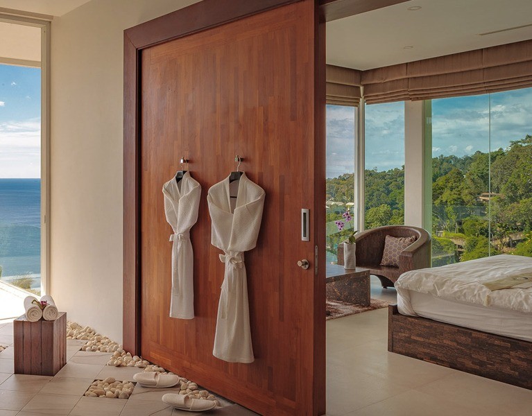 Two of the master suites feature direct access to their own swimming pool and are set among the treetops of the mature plants growing on the hillside.