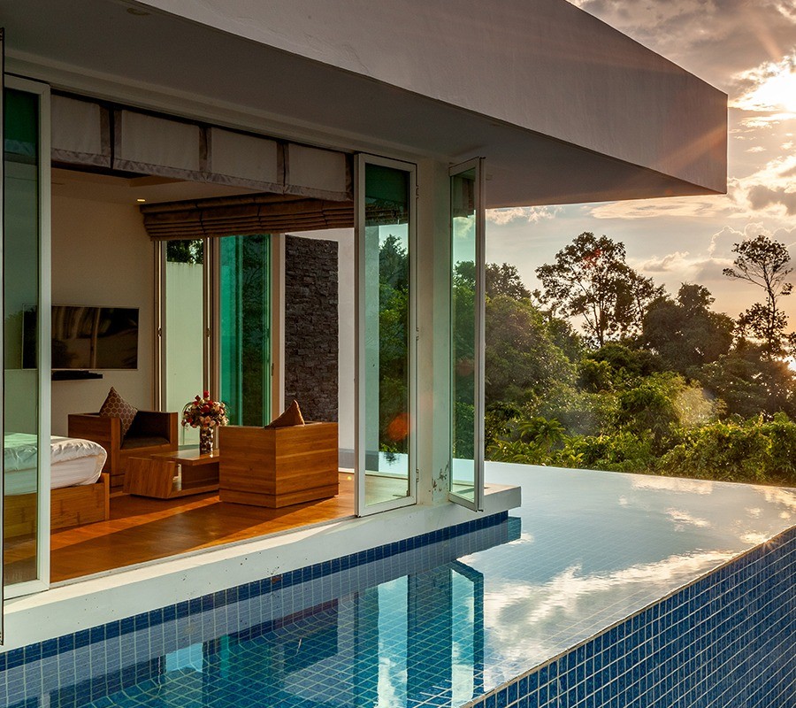 What villa experience would be complete without a spectacular infinity pool overlooking the ocean. Villa Solaris has not one, but three swimming pools to satisfy your needs. The primary pool is on the main entry level of the first pavilion with commanding views over the property and Andaman Sea below. The pool is surrounded by decking and large planter pots, with sun-loungers and an outdoor shower for convenience.