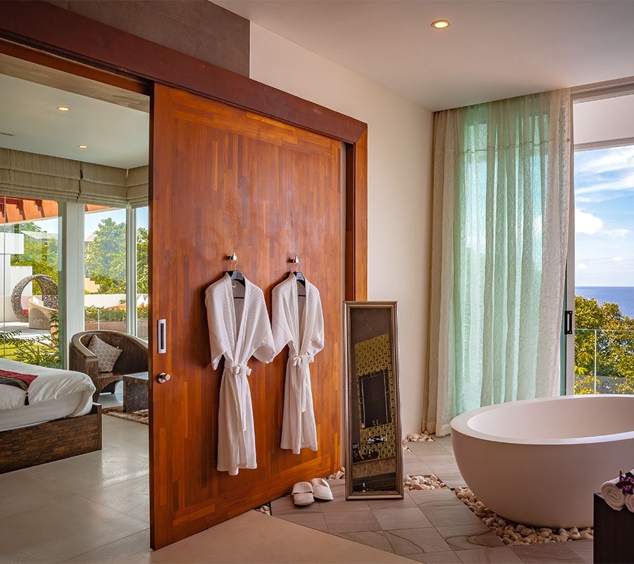 Ocean views, 3 Infinity pools, cinema room, gymnasium, air-conditioned living space, luxurious bedrooms, and fully staffed including an inhouse chef. All four bedrooms with ensuite bathrooms.