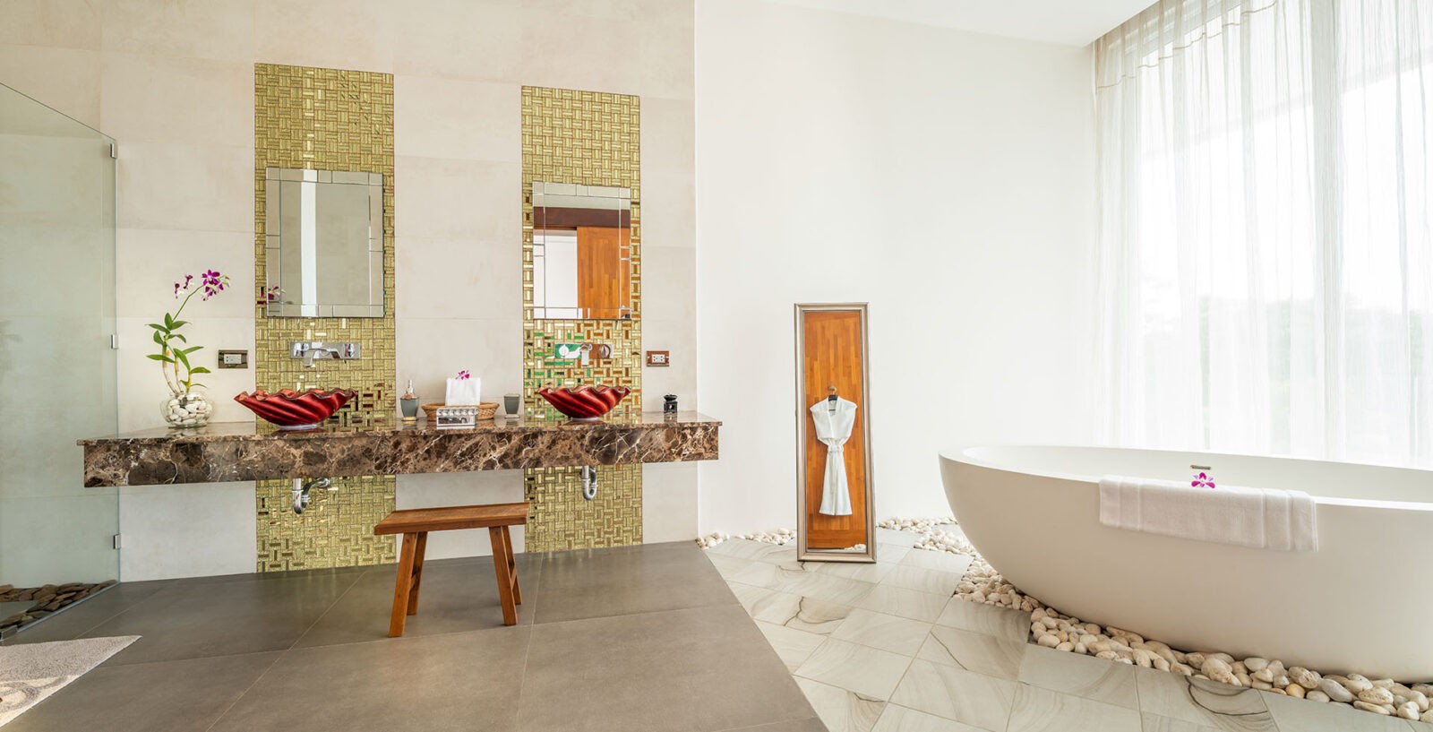 The villa has two spacious living areas on the entry level; an open plan living, kitchen and dining and a sitting room (both with the option of air-conditioning).